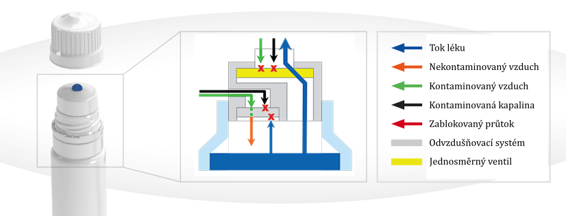 Společnost UNIMED PHARMA používá inovativní systém Novelia, který eliminuje potřebu použití konzervačních látek v roztoku a zabraňuje bakteriální kontaminaci produktu po dobu 3 měsíců.